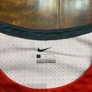 Get game day ready with this pre owned Ohio State Buckeyes men's large basketball jersey. Constructed from lightweight polyester, this jersey offers maximum comfort and mobility throughout every play. The meticulously stitched lettering adds a touch of authenticity, making this jersey a standout choice for any devoted Buckeyes fan. Upgrade your fan wardrobe with this classic piece today.