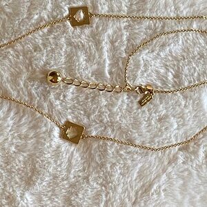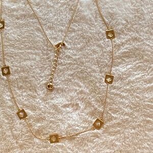 Chic 30 inch gold necklace with square charms. Perfect for any occasion.