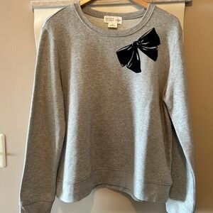 Elegant gray sweater with a bold black bow. Ideal for a sophisticated look.