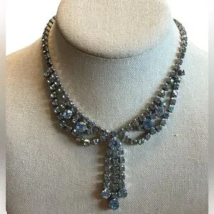 Vintage La-Rel Silver Ice Blue Rhinestone Choker Necklace