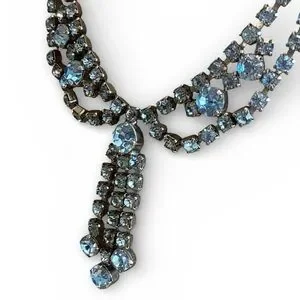 This stunning silver ice blue rhinestone necklace adds a touch of elegance to any outfit. Perfect for special occasions or everyday wear.