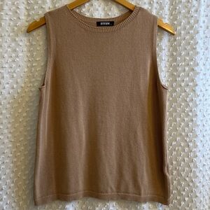 Lightweight tan sweater vest from BTFBM. Measurements in photos. Perfect for layering or wearing on its own, this sleeveless sweater vest is neutral in color and incredibly versatile!