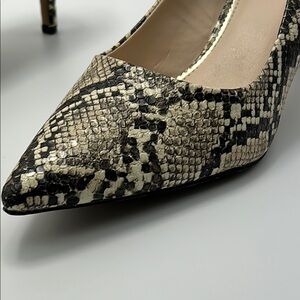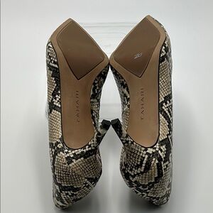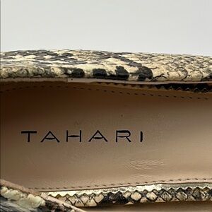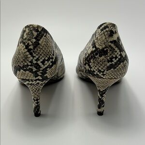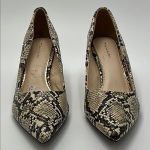 New Tahari Sofiya Kitten Heel Pumps 9 Snakeskin Pointy Toe Beige Black Classic