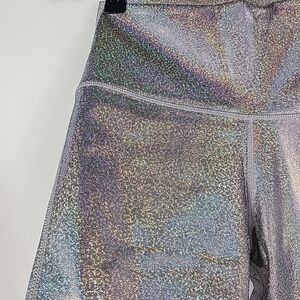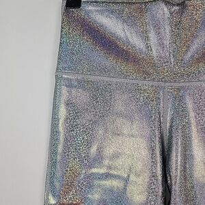 NEW Mono B Women Silver Foil Out Of This World Lycra Nilit Softex Leggings Sz S. Waist 24", inseam 26"