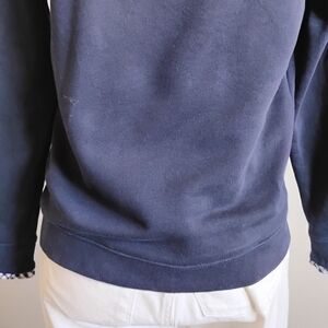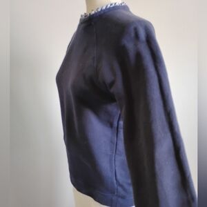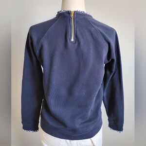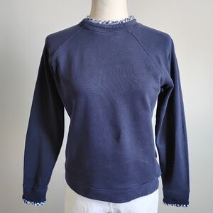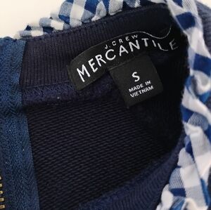 J.Crew Cotton Sweatshirt Micro Ruffle Neck Classic Navy Blue Gingham Size Small