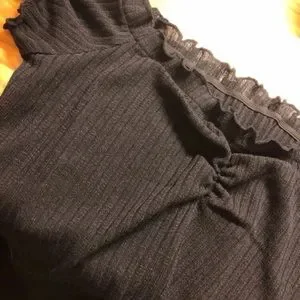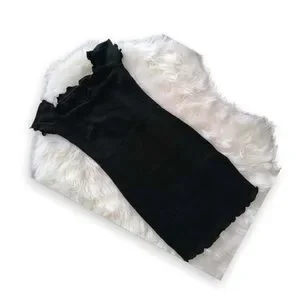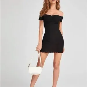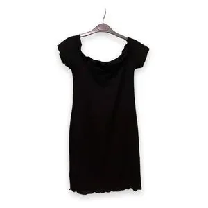 New Casual Black Lettuce Trim Ribbed Off-the-Shoulder Bodycon Mini Pencil Dress