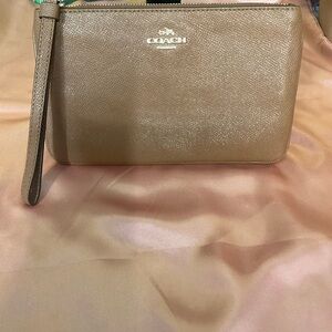 Coach Brown pebbled leather Wristlet Clutch. #1312