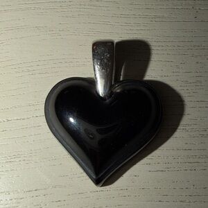 Lalique black crystal heart pendant featuring a sterling silver bale branded with the company name.