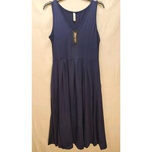 24seven Dress Size Small Midi Blue Pockets Vneck Causal Sleeveless