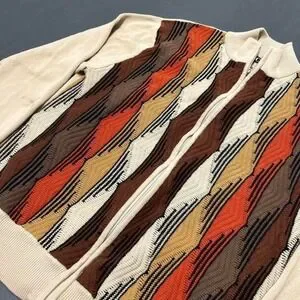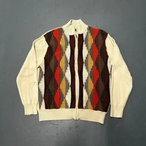 Men's vintage y2k Coogi style earth tone 3d knit full zip up sweater