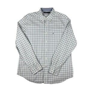 Nautica Shirt Mens Large White Blue Green Plaid Long Sleeve Button Down Casual