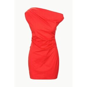 Staud Mini Phare Draped Poplin Cotton Dress Cayenne Red Size 6 Summer Party