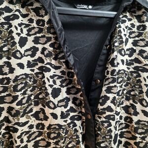 The Midi dress with a leopard print pattern features a stylish black collar, button placket, and hem, making it perfect for both party and casual occasions. Made of polyester fabric, this lined dress has a V-neck and ruffle accents, with ruffle cap sleeves adding a trendy touch. The animal print pattern and cheetah character theme give it a unique and playful look, ideal for the summer and spring seasons. The hook & loop closure and machine washable care instructions make it convenient and easy to wear. This Sienna Sky wrap dress in size M is a fashionable choice for any woman's wardrobe.