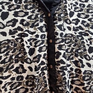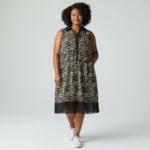 Midi dress leopard print pattern black collar Button Placket And Hem sheer dress