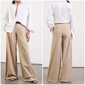 Nili Lotan Dillon Sandstone Wide Leg Pant size 6 high rise