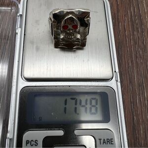 VINTAGE Skull Biker Ring • Red Eyes • Silver Tone • Mexico • Size 10