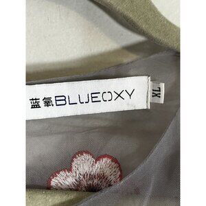 Retro Floral Mesh Maxi Dress Gray XL Whimsical Romantic Fairy Sheer Colorful Art