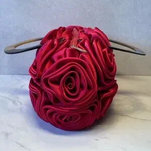 👛Hot Pink Satin Roses Evening Bag