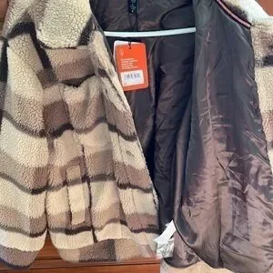 Bass Outdoor Women’s Tan and Brown Sherpa Shacket All Lined With Pockets Size Large NWT