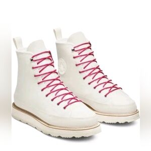 These Chuck Taylor Crafted Boot Hi sneakers come in a classic white color with Egret/Ivory/Pink accents, perfect for any occasion.