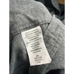 Legendary Whitetails Buck Camp shirt in classic heather gray. Durable 100 percent cotton construction with button front and chest pocket detail. A versatile outdoor staple perfect for layering over tees or wearing solo.