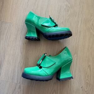 Fluevog Stop It SOSTA Mary Janes Green Patent Size 6 Heels