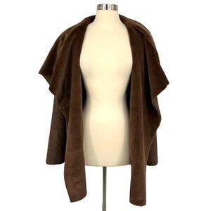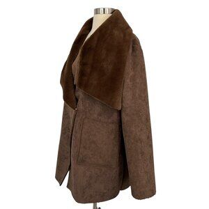Lauren Ralph Lauren Coat Womens Large Brown Faux Shearling Fleece Drape Collar