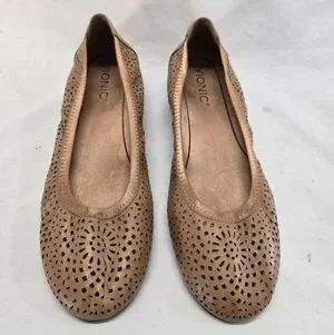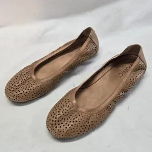 Vionic Women's Size 9 Brown Robyn Perforated Leather Ballet Flats Shoes