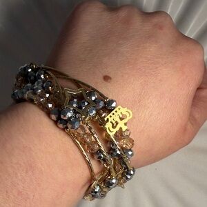 Enhance your style with this chic bracelet featuring a blend of gold and silver beads. Perfect for any occasion.