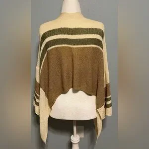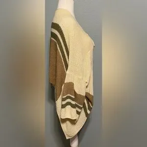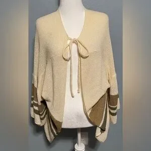 Pol Beige Cardigan Sweater Knit Tie Front Boho Neutral Striped Layering Medium