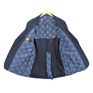 Elevate your style with this classic navy blazer, perfect for any occasion. See pictures for exact measurements. Wool