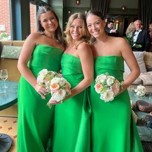 Selling this beautiful green dress from Solace London - the Kinsley Dress. I bought it as a US 8, but got it professionally altered to fit more like a 6. Attached pictures for fit reference and color! Only worn once for a bridesmaid dress. Recently professionally dry cleaned and in perfect condition.