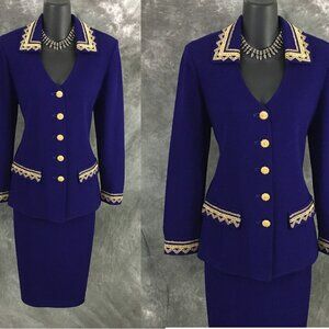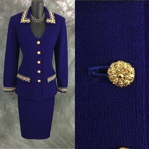 BEAUTIFUL st john evening knit purple gold rhinestones embellished skirt suit 8