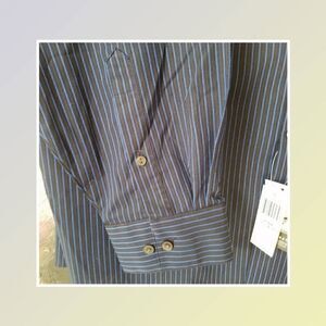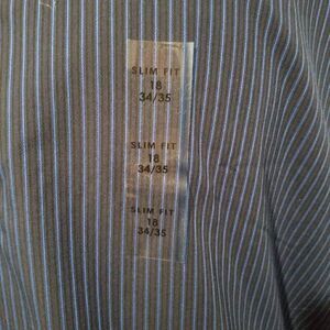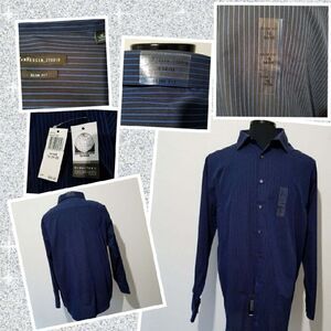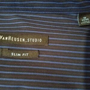 NWT, VanHeusen Studio slim fit, long sleeve button down dress shirt. Dark blue with a royal blue pinstripe. Size 18 34/35.