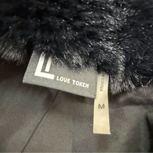 Love Token Black Faux Fur Collared Long Sleeve Jacket Coat Sz M