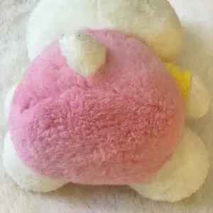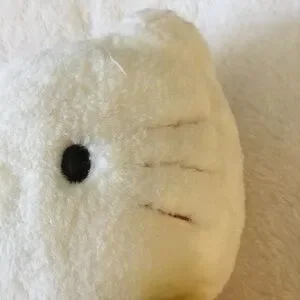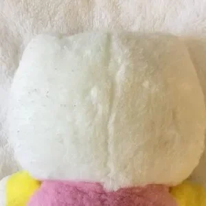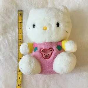 DESCRIPTION: Pre-loved. There's no whisker on the left side and not as soft as used to be. This adorable Hello Kitty is perfect for kids. Featuring a cute pink outfit with yellow accents,