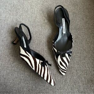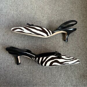 Vintage Manolo Blahnik zebra pony hair heels