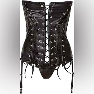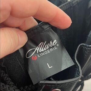 Allure 100% Leather Lingerie Kitten Lace Up Corset Like New Large. Soft supple leather with sueded interior. Laces are well made so that it doesn’t cut into the skin. This is beautifully made. Adjustable fit. Has loops for garters. Metals stays sewn into the leather.