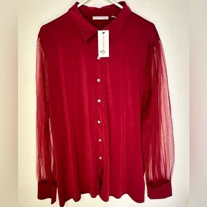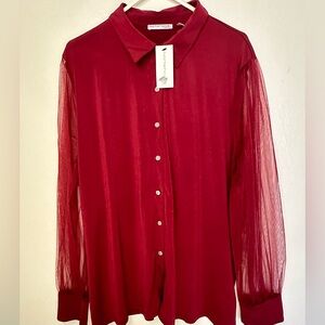 Notations Red Sheer Button-Down Shirt
