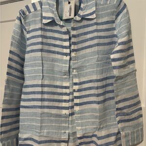 Tags: LN, Linen Shirt, UNTUCKit Women, Striped Top, Size 6, NWT, Blue White, Beachy Style, Classic Button Down, Summer Outfit, Resort Wear