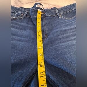 Levi’s straight leg mid rise jeans plus size denim casual classic minimalist. Dark blue wash button/zip closure with pockets stretchy.