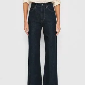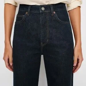 A bestseller for a reason. This is a wide-leg, loose-fitting jean that sits at the natural waist and is cut to make your legs look super long. Made with rigid denim.