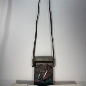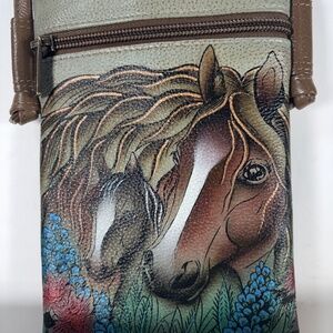 SMALL MULTI-COLOR ,EASY SPIRIT -W-5" X H- 8' x D-1"- RFID BLOCKER TO PROTECT YOU - OUTSIDE POCKETS FOR YOUR PHONE - HAND PAINTED SOFT LEATHER STARTING WITH ALL WHITE LEATHER - PULL CARD CASE
