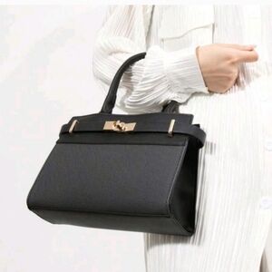 Elegant Hermès style handbag in black. Comes with a stylish scarf. Includes a genuine Hermès box.