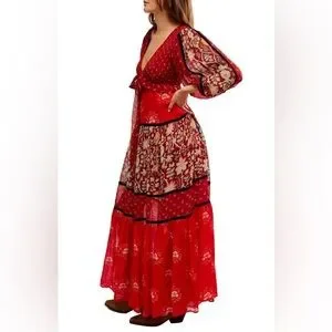 Free People Bali Laurel Bohemian Long Sleeve Red Maxi Dress - $298