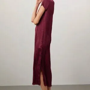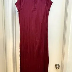 NWT Madewell Short-Sleeve Slip Midi Dress in Burgundy Plissé Size M