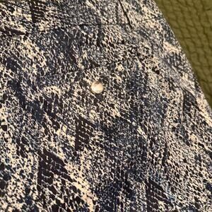 Calvin Klein Women's Blue and White Snake Print Shorts - Size 14