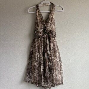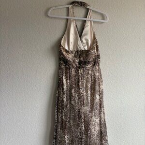 BCBG MAXAZRIA Silk Gold Halter Dress Women's Size 2 Elegant Bodycon Babydoll