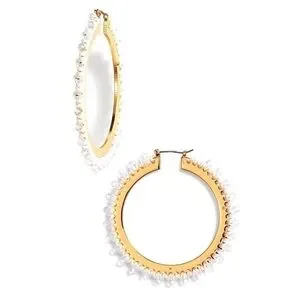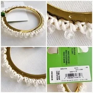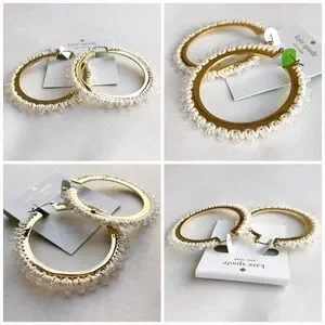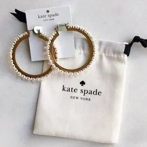 Kate Spade Wrap It Up Hoop Earrings in gold and white. Threading laces faceted beads around a golden hoop. 2 1/2" drop; 3/8" width. Snap-post closure. Nylon/glass/cubic zirconia/14k-gold plate. Brand new with tags and dust bag.