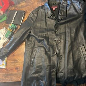 Stylish black leather jacket perfect for any occasion. Crafted for comfort and durability. It is in excellent condition and can ship immediately.